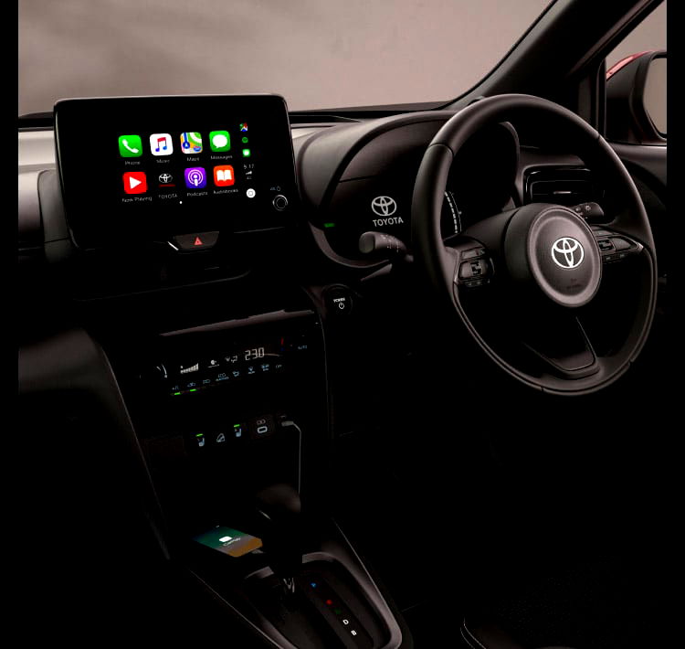[C12] CarPlay® is a trademark of Apple, Inc. registered in the U.S. and other countries. Requires compatible device, USB connection (or Bluetooth® connection for vehicles fitted with wireless CarPlay®), mobile data, network reception & GPS signal. Mobile usage at user’s cost. Apps subject to change. For details see toyota.com.au/connected.[C13] Android Auto™ is a trademark of Google LLC. Requires compatible device, USB connection (or Bluetooth® connection for vehicles fitted with wireless Android Auto), mobile data, network reception & GPS signal. Mobile usage at user’s cost. Apps subject to change. For details see toyota.com.au/connected. Speak to your Dealer about device compatibility.